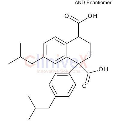 | Chemical Name: | (1S,4R)-6-(2-methylpropyl)-4-[4-(2-methylpropyl)phenyl]-2,3-dihydro-1H-naphthalene-1,4-dicarboxylic acid |