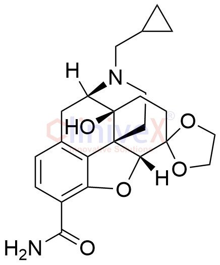 | Chemical Name: | (4'aS,7'aR,12'bS)-3'-(cyclopropylmethyl)-4'a-hydroxy-spiro[1,3-dioxolane-2,7'-2,4,5,6,7a,13-hexahydro-1H-4,12-methanobenzofuro[3,2-e]isoquinoline]-9'-carboxamide |