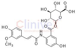 | Chemical Name: | (2S,3S,4S,5R,6S)-3,4,5-trihydroxy-6-[5-hydroxy-2-[[(E)-3-(4-hydroxy-3-methoxy-phenyl)prop-2-enoyl]amino]benzoyl]oxy-tetrahydropyran-2-carboxylic Acid |