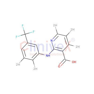 | Synonyms: | 2-[[3-(Trifluoromethyl)phenyl]amino]-3-pyridinecarboxylic Acid-d5; 2-[3-(Trifluoromethyl)anilino]nicotinic Acid-d5; Actol-d5; Donalgin-d5; Flogovital-d5; Forenol-d5; Landruma-d5; Nifluminic Acid-d5; Nifluril-d5; UP 83-d5; |