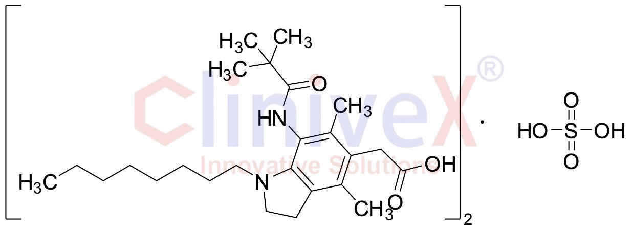 | Chemical Name: | 2-[7-(2,2-dimethylpropanoylamino)-4,6-dimethyl-1-octyl-2,3-dihydroindol-5-yl]acetic acid,sulfuric acid |